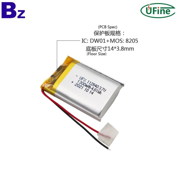 中國鋰電芯廠供應按摩器電池 UFX 112840 3.7V 1300mAh 鋰離子聚合物電池