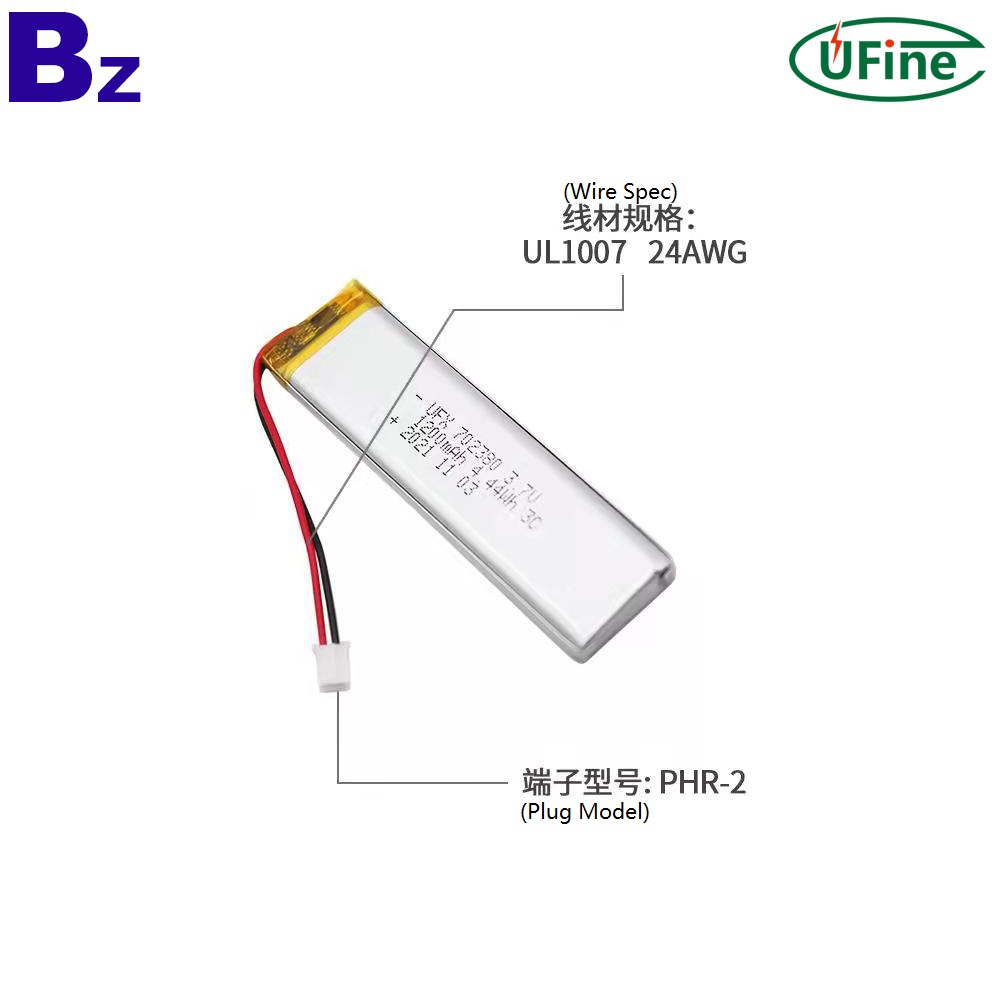 鋰電芯工廠定制美容儀鋰離子聚合物電池 UFX 702380 3.7V 1200mAh 3C 放電鋰電池